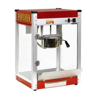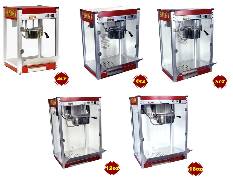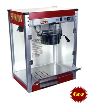 I purchased the Paragon Theater Pop 6oz for a basement bar. Sturdy steel and glass construction gives an instant impression of quality. Food surfaces including the doors and removable deck come with factory coverings so you know they're sterile. The popper has everything. A great kettle, plexiglass doors to resist shattering, a removable deck for cleaning, an "old maid" drawer to catch unpopped kernels, and a warmer under the deck. Two switches - light/warm, and kettle.