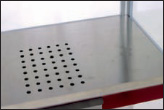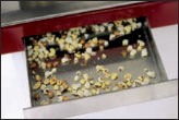 A stainless steel drawer built into the base of the popper collects the unpopped kernels, or “old maids.” The small holes in the tray allow the old maids to fall through, while keeping the fully popped corn in the serving cabinet. It’s simple to remove the drawer for emptying and cleaning. |