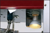 A 50-watt R20 lamp lights the cabinet interior and highlights the popped corn for added impulse sales. The light also provides extra safety and convenience because the operator can see the kettle clearly for loading and unloading. |
