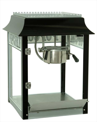 Nostalgia combined with new technology! The antique styling of the 1911 Black Popcorn Machine is reminiscent of the poppers used by American street vendors almost 100 years ago. This model pairs old-fashioned flair with our newest innovations including side-hinged, anodized aluminum kettles and extruded side post construction. Note: Old Maid Drawer & Warming Unit only available on the 8oz Machine.